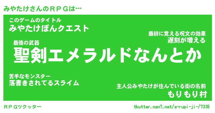 | 男性向けラノベタイトル風あだ名 | 『みやたけの憂鬱』 |