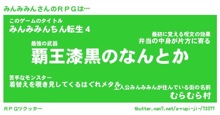| 胡散臭い通販商品みたいなあだ名 | 『億万長者になれる霊験あらたかなお札…その名も「みんみみん」』 |