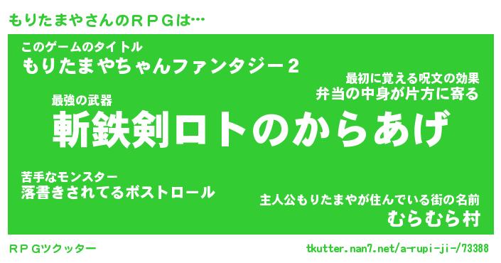 | ヒーロー風カッコイイあだ名 | 『スーパーモリタマヤ』『天弓騎士モリ』 |