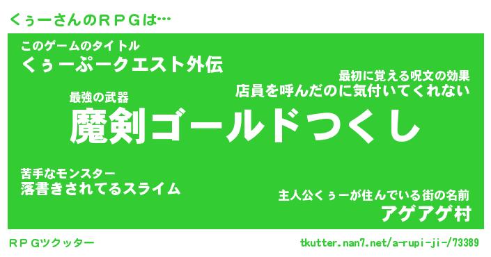 | ファンタジー風あだ名 | 『クゥフェル』『エターナルクゥーー』 |