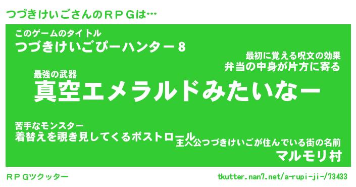 | 男性向けラノベタイトル風あだ名 | 『ツヅキケイゴアートオンライン』 |