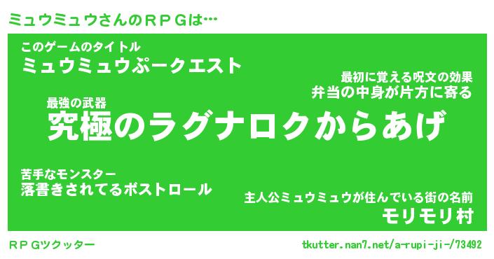 | 料理風あだ名 | 『節約★ミュウミュウと油揚げの玉子丼』 |