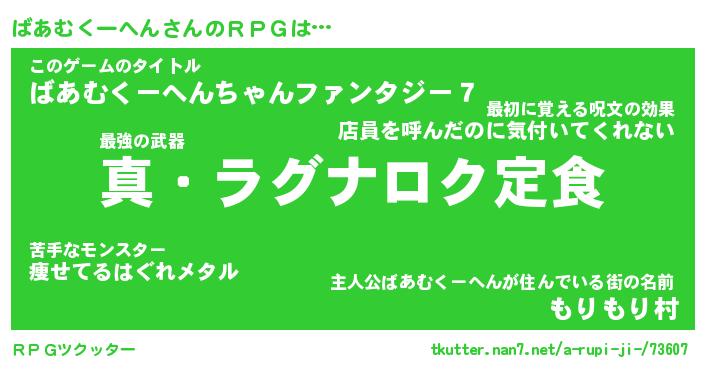 | 男性向けラノベタイトル風あだ名 | 『バアムクーヘンアートオンライン』 |
