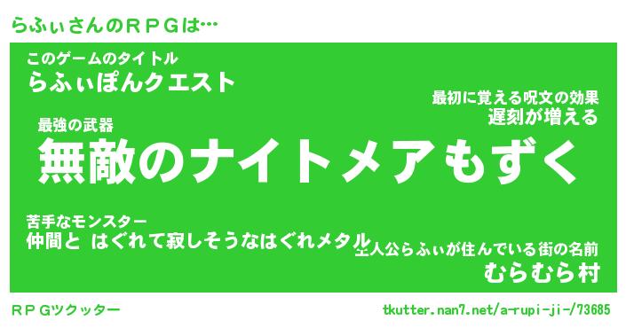 | 伝説のあだ名 | 『封印されしスナイパーらふぃ』 |