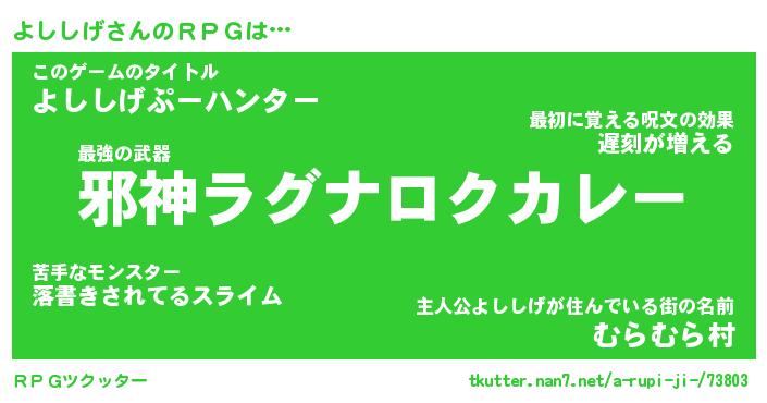 | ヒーロー風カッコイイあだ名 | 『スーパーヨシシゲ』『暗黒騎士ヨシ』 |