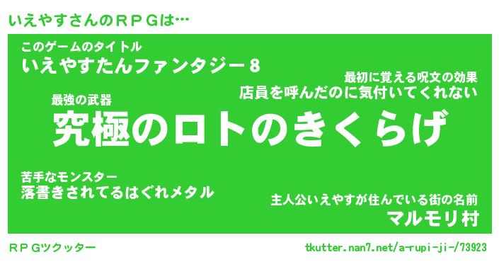 | 男性向けラノベタイトル風あだ名 | 『いえやすの憂鬱』 |
