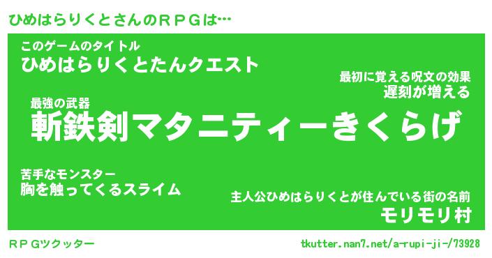 | 胡散臭い通販商品みたいなあだ名 | 『必ず成功する霊験あらたかなお札…その名も「ひめはらりくと」』 |