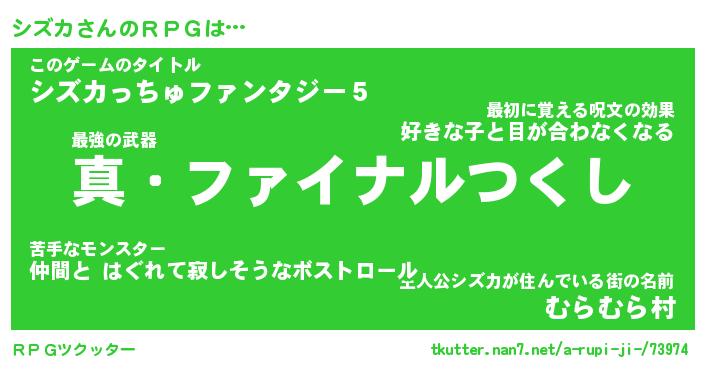 | ファンタジー風あだ名 | 『シズフェル』『エターナルシズカー』 |