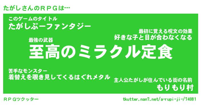 | ファンタジー風あだ名 | 『タガフェル』『エターナルタガシー』 |