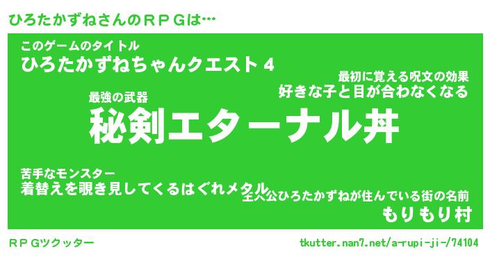 | ヒーロー風カッコイイあだ名 | 『スーパーヒロタカズネ』『幻影騎士ヒロ』 |