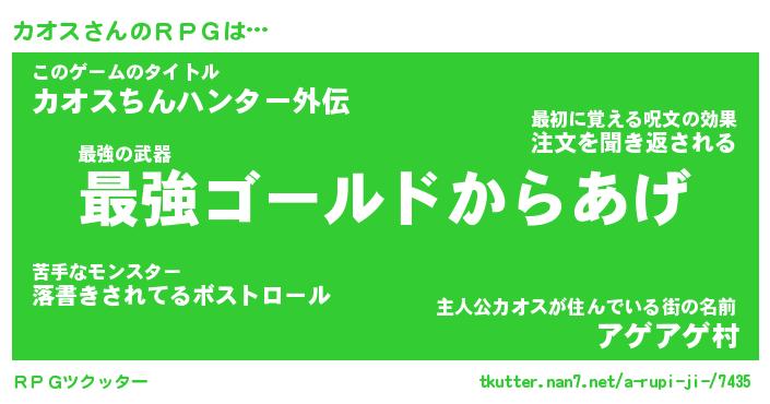 | 男性向けラノベタイトル風あだ名 | 『カオスアートオンライン』 |