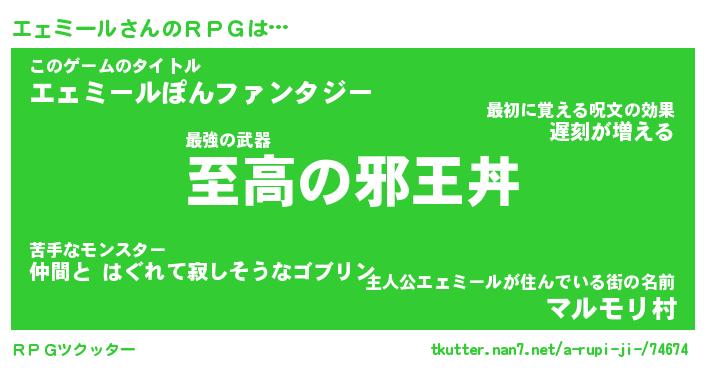 | 料理風あだ名 | 『節約★エェミールと油揚げの玉子丼』 |