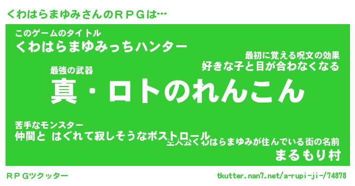 | 胡散臭い通販商品みたいなあだ名 | 『億万長者になれるブレスレット…その名も「くわはらまゆみ」』 |