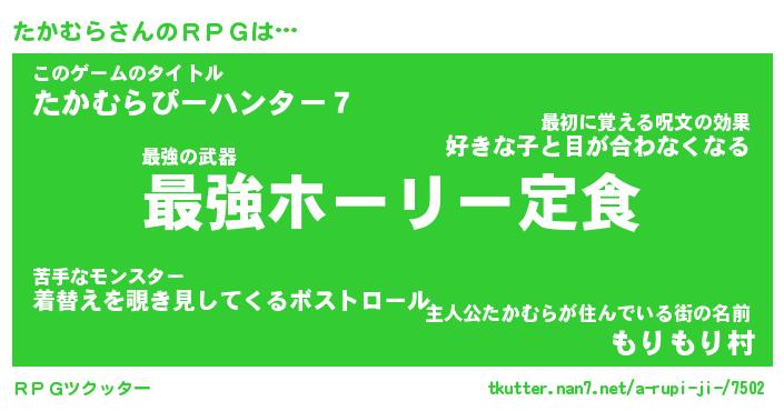 | 女子向けラノベタイトル風あだ名 | 『たかむら姫と円卓の騎士』 |