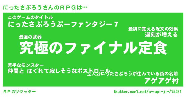 | 男性向けラノベタイトル風あだ名 | 『にったさぶろうの憂鬱』 |