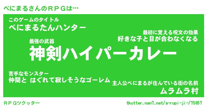 | 男性向けラノベタイトル風あだ名 | 『べにまるの憂鬱』 |