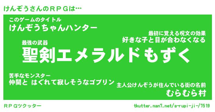 | ヒーロー風カッコイイあだ名 | 『スーパーケンゾウ』『魔戒騎士ケン』 |