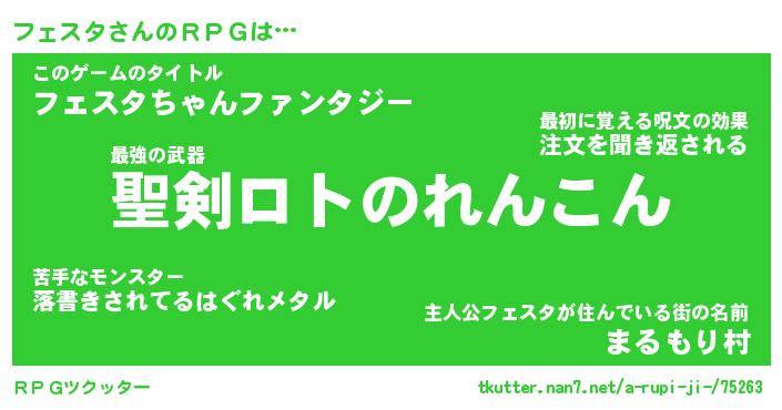 | 男性向けラノベタイトル風あだ名 | 『フェスタの憂鬱』 |