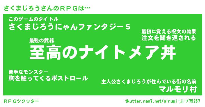 | 男性向けラノベタイトル風あだ名 | 『サクマジロウアートオンライン』 |