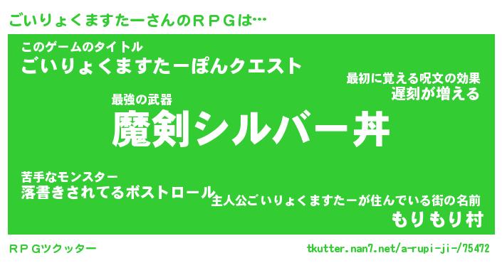 | ヒーロー風カッコイイあだ名 | 『スーパーゴイリョクマスター』 |