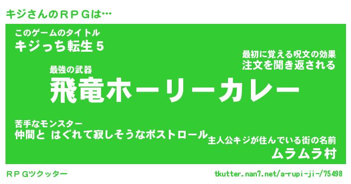 | ファンタジー風あだ名 | 『キジフェル』『エターナルキジー』 |