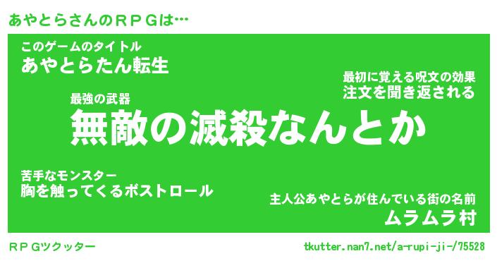 | 男性向けラノベタイトル風あだ名 | 『アヤトラアートオンライン』 |