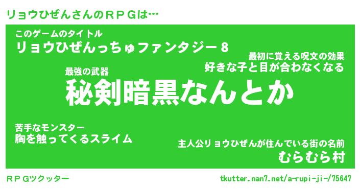| 男性向けラノベタイトル風あだ名 | 『リョウひぜんの憂鬱』 |