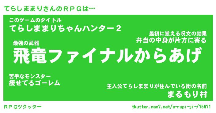 | 伝説のあだ名 | 『封印されし竜騎士てらしままり』 |