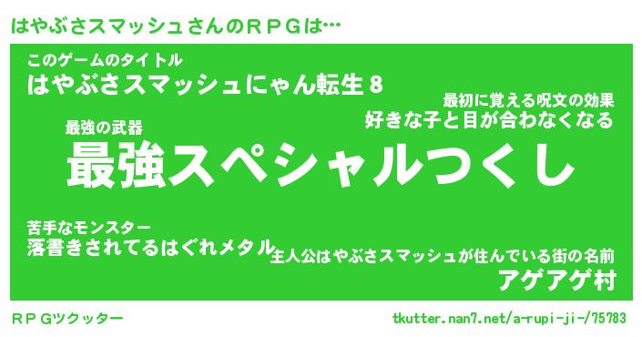 | ツイッター | はやぶさスマッシュさんのツイッターID『katatsumuri_man』 |