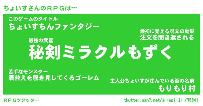 | ファンタジー風あだ名 | 『チョフェル』『エターナルチョイスー』 |