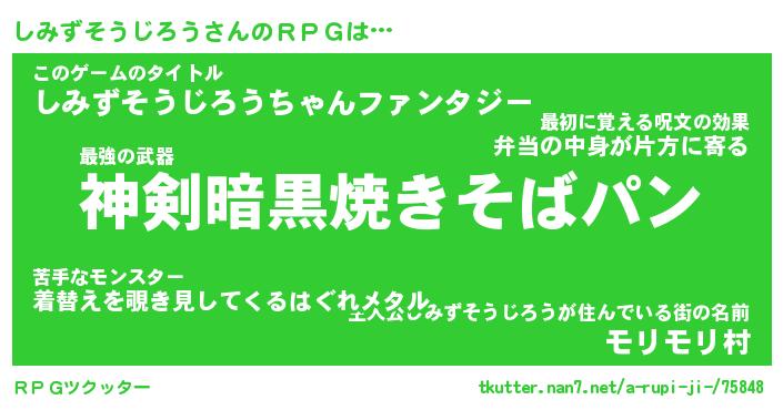 | 胡散臭い通販商品みたいなあだ名 | 『モテモテ間違いなし水晶球…その名も「しみずそうじろう」』 |