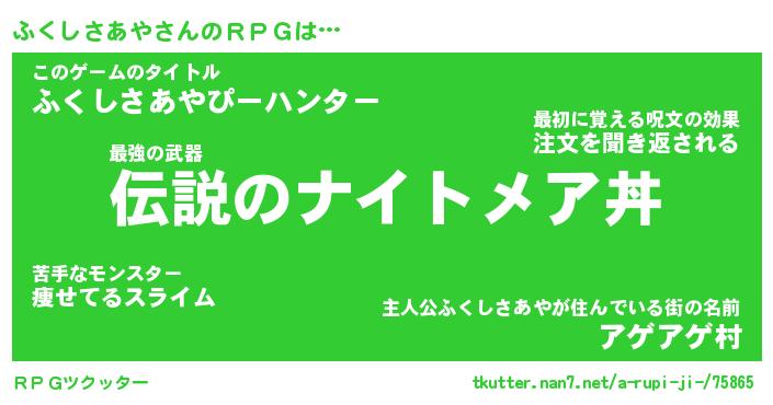 | 料理風あだ名 | 『節約★ふくしさあやと油揚げの玉子丼』 |