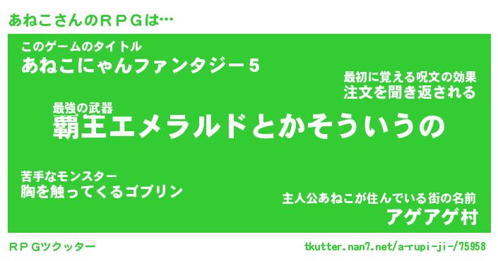 | ファンタジー風あだ名 | 『アネフェル』『エターナルアネコー』 |