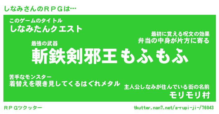 | ヘコむあだ名 | 『しなにゅー』『つくし』 |