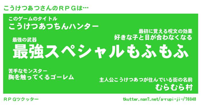 | 男性向けラノベタイトル風あだ名 | 『コウケツアツアートオンライン』 |