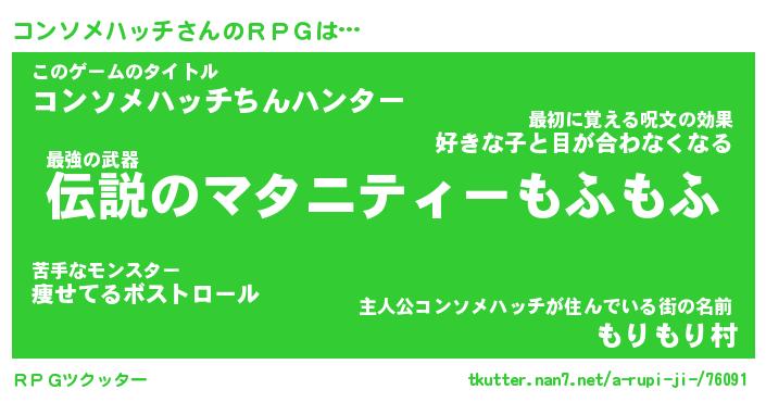 | 男性向けラノベタイトル風あだ名 | 『コンソメハッチの憂鬱』 |
