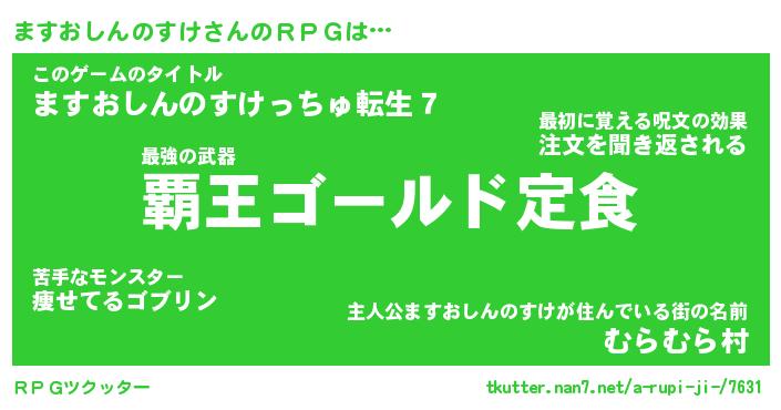 | 男性向けラノベタイトル風あだ名 | 『マスオシンノスケアートオンライン』 |