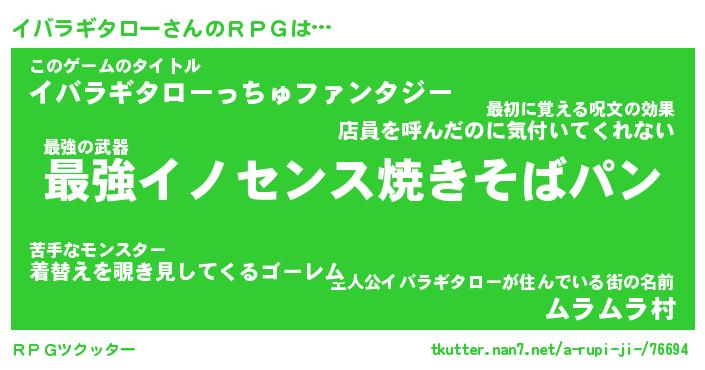 | 男性向けラノベタイトル風あだ名 | 『イバラギタローアートオンライン』 |