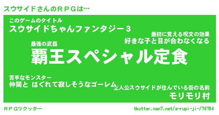 | ファンタジー風あだ名 | 『スウフェル』『エターナルスウサイドー』 |