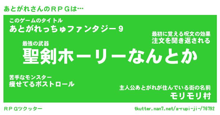 | ファンタジー風あだ名 | 『アトフェル』『エターナルアトガレー』 |