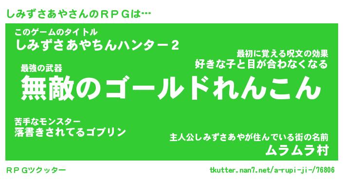 | 伝説のあだ名 | 『封印されしスナイパーしみずさあや』 |