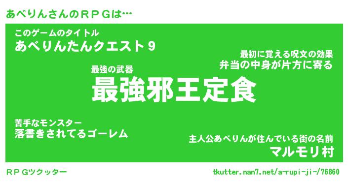 | ヒーロー風カッコイイあだ名 | 『スーパーアベリン』『幻影騎士アベ』 |