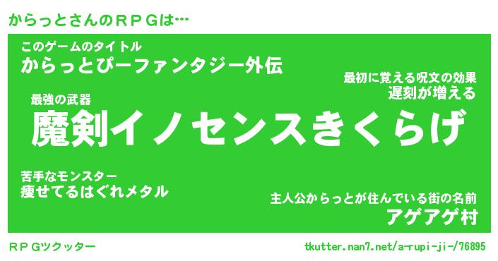 | ファンタジー風あだ名 | 『カラフェル』『エターナルカラットー』 |