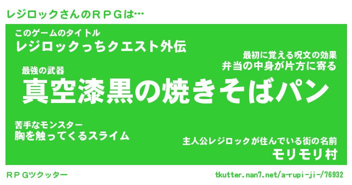 | ファンタジー風あだ名 | 『レジフェル』『エターナルレジロックー』 |