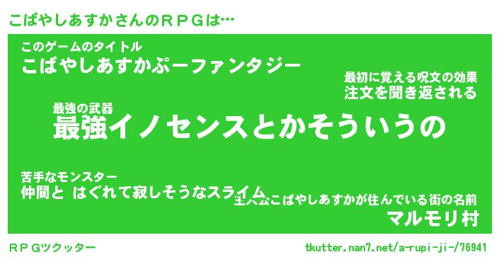 | 胡散臭い通販商品みたいなあだ名 | 『モテモテ間違いなし霊験あらたかなお札…その名も「こばやしあすか」』 |