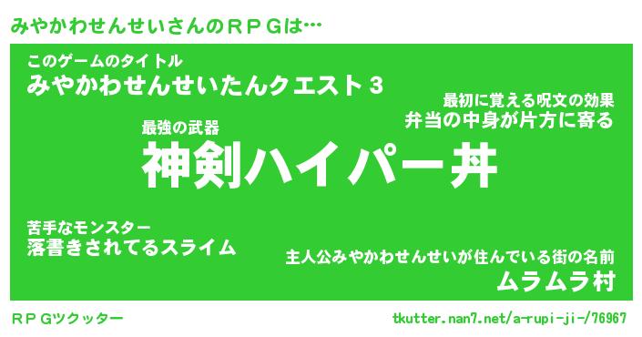 | ピコ太郎風あだ名 | 『ミコ次郎』『ピミ次郎』『ミヤ太郎』 |