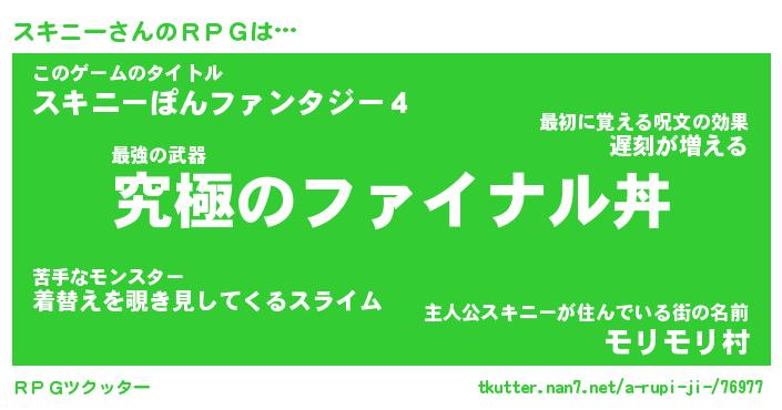 | 料理風あだ名 | 『節約★スキニーと油揚げの玉子丼』 |