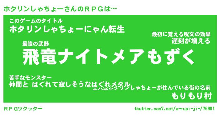 | 胡散臭い通販商品みたいなあだ名 | 『億万長者になれる霊験あらたかなお札…その名も「ホタリンしゃちょー」』 |