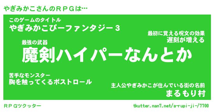 | 伝説のあだ名 | 『伝説の竜騎士やぎみかこ』 |