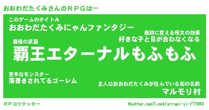 | 胡散臭い通販商品みたいなあだ名 | 『億万長者になれる水晶球…その名も「おおわだたくみ」』 |